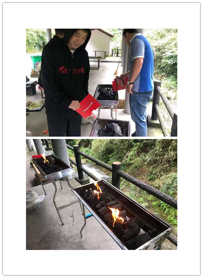 選定位置后大家開始分頭行動(dòng)。在活動(dòng)之初公司綜合部已提前準(zhǔn)備好了燒烤爐、食材、水果、飲料及游戲道具等。女同事們互相配合著洗菜、串肉,男同事們則幫生火、加炭,活動(dòng)現(xiàn)場(chǎng)非常熱鬧。大家都拿出了“十八般武藝”,品嘗著自己親手烤出的各種美食,聊著在工作和生活中遇到的各種趣事,整個(gè)場(chǎng)面其樂融融。
