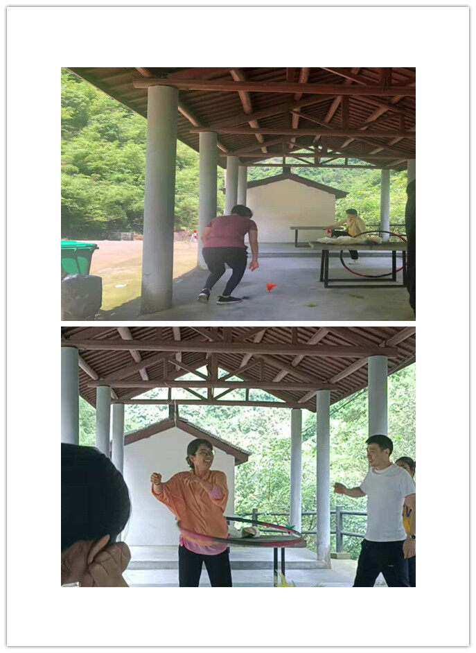 休息間隙,為了讓胃里的食物得以充分消化,同事們呼拉圈及踢毽子比賽輪番上演。
